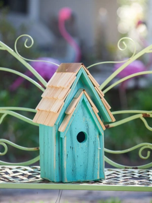 In most cases, a natural wood nesting box is best because metal and plastics can build up excess heat. Avoid using wood that’s been treated with stain or a preservative. There should be drainage holes on the bottom of the box, and ventilation holes to ensure a flow of fresh air. Most birds seem to prefer weathered wood over new wood, so a new birdhouse may need to weather for a year before birds find it appealing. Birds start scouting for lodging in very early spring, so make sure the house is up and ready for viewing early in the season.